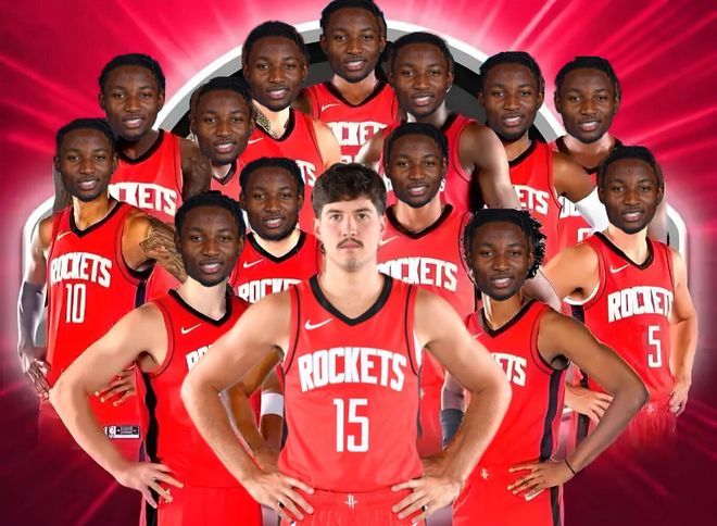 火箭的针对性非常强, 又排出了 “死亡五大”的先发:阿门、杜兰特、贾巴里·史密斯、申京、亚当斯。